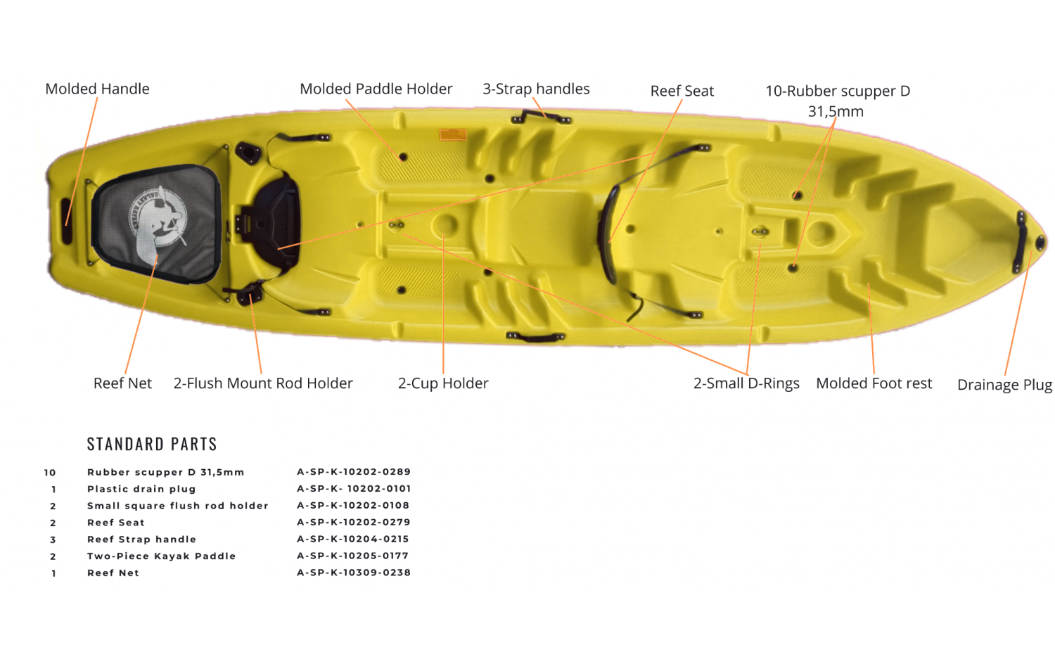 - Praktische Fußstützen: geformte Fußstützen garantieren eine bequeme Position für unterschiedlich große Paddler.