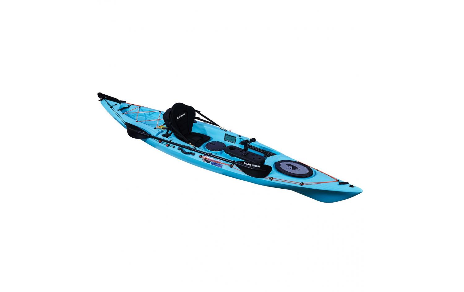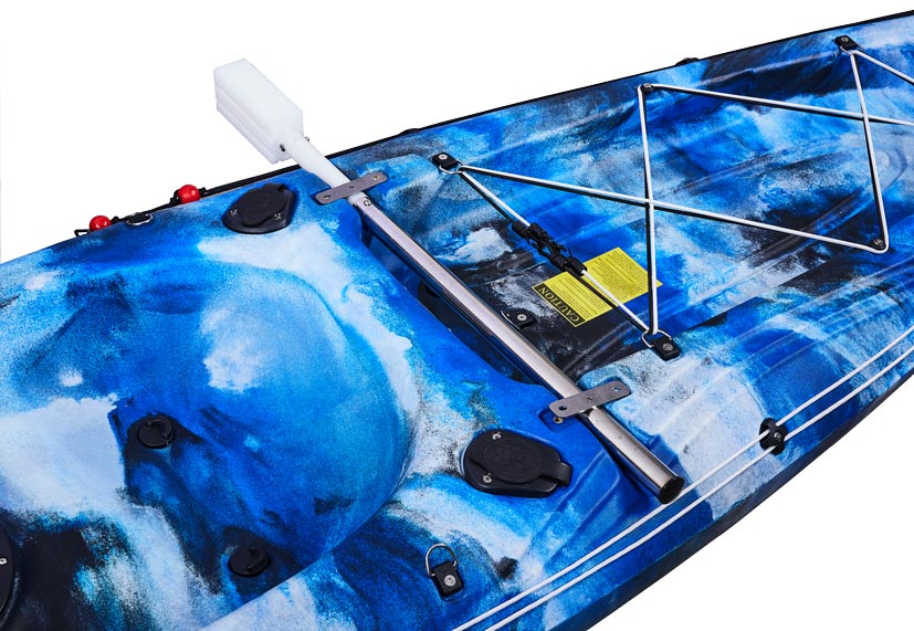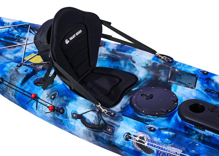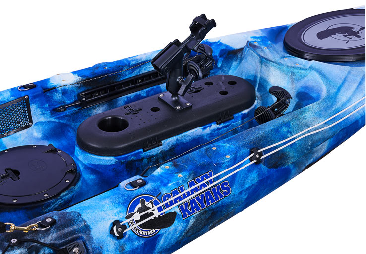 Das Ergebnis ist eines der Premium-Angelmodelle von Galaxy Kayaks, das mit allen notwendigen Ausrüstungsgegenständen ausgestattet ist, um mit dem Angeln zu beginnen. Dazu gehören zwei hintere bündige Rutenhalter und ein Railblaza Rutenhalter R, der standardmäßig maximale Flexibilität ermöglicht.
