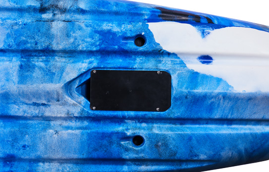 1 geformte Aufnahmeoption für einen E-Motor im hinteren Bereich des Kajaks