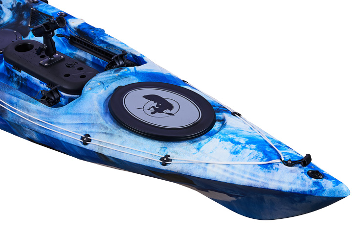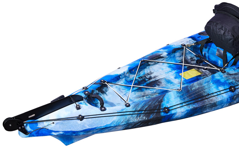 Verbesserte Wasserlinie: der hintere Bereich des Kajaks wurde um 5 cm angehoben und die Ankermulde ersetzt, wodurch die Wasseransammlungen in diesem Abschnitt bei rauen Bedingungen reduziert und die Entwässerungsfähigkeit verbessert. Unser Kundenfeedback hat ergeben, dass viele Angler im hinteren Bereich ihrer Kajaks eine Tacklebox oder “Crate” verwenden was bedeutet, dass der neue gestaltete Bereich die Stabilität eines solchen Kayakcrates verbessert.