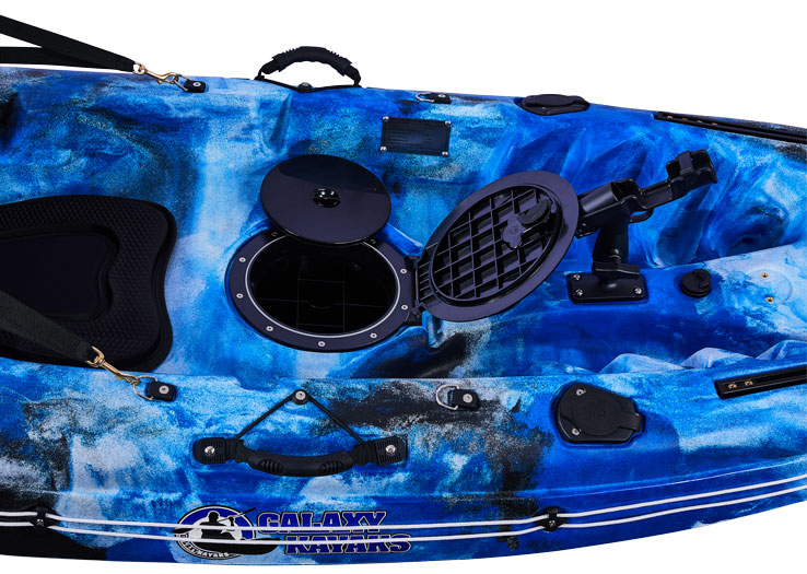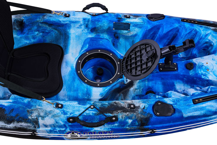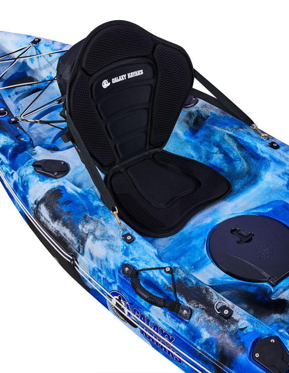 Galaxy Kayaks orientiert sich natürlich nach den Wünschen der Kunden und so haben wir im Sitzbereich geformte Mulden, so dass mit dem Cruz Pro Angler nun auch ein hoher Sitz (“Throne High Chair”) genutzt werden kann. Perfekt für längere Angelsessions und Touren in ruhigem Wasser!