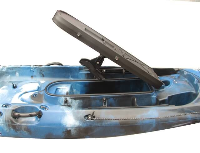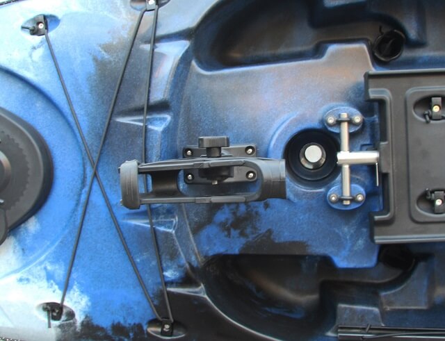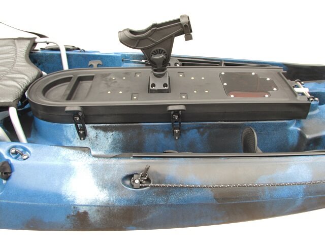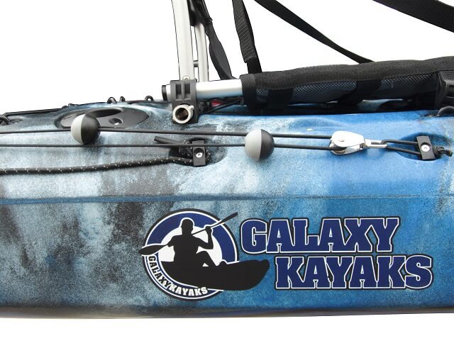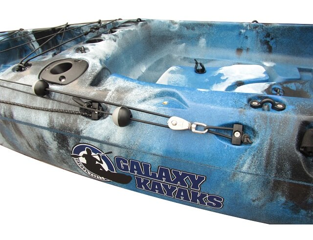 Das Galaxy Marlin 438 Kajak enthält standardmäßig zwei vordere Spülhalterungen, zwei geformte Stauraumhalterungen und einen rechteckigen Schwenkhalter. Es enthält außerdem einen Transducerhalter auf dem Boden des Rumpfs, welcher sich leicht mit dem multifunktionalen, drehbaren Gerät durch einen Speigatt Stöpsel verbinden lässt.