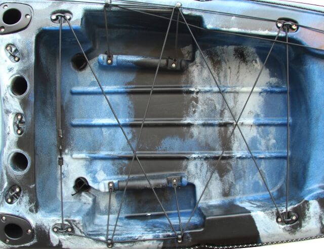 6 Abflusspunkte: um das Kayak herum angebracht, damit Du die Wahl hast, wo Du Wasser ablässt und gewünschte Stellen trocken bleiben.