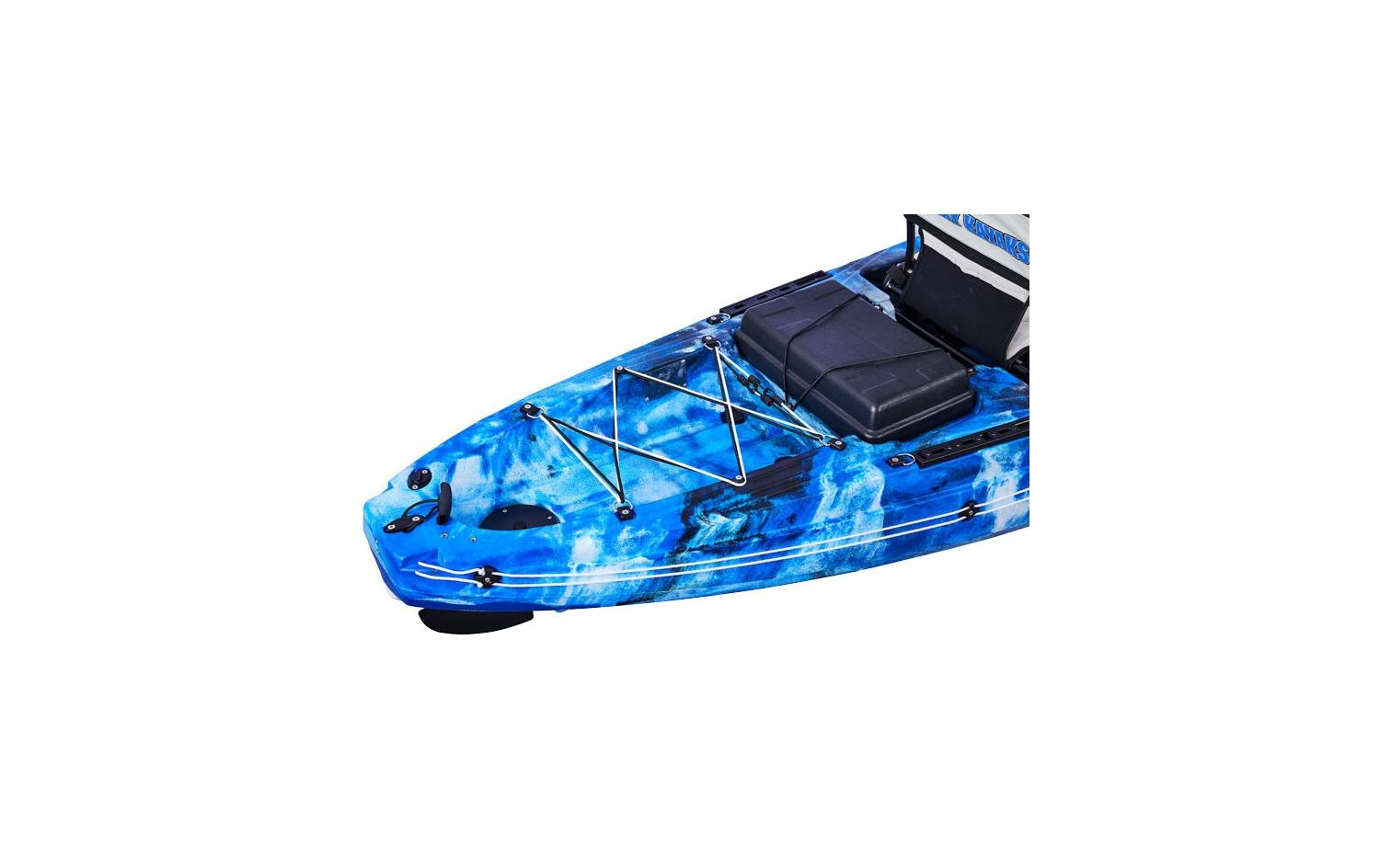 1 hinterer Aufbewahrungsbereich: komplett mit Gummizügen, dieses Fach ermöglicht es simpel Sachen auf dem Kajak zu transportieren.