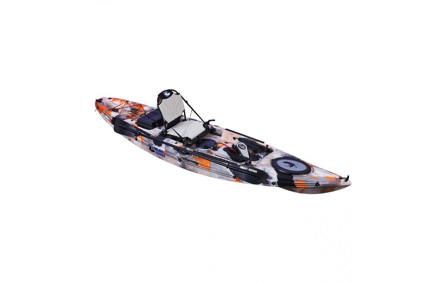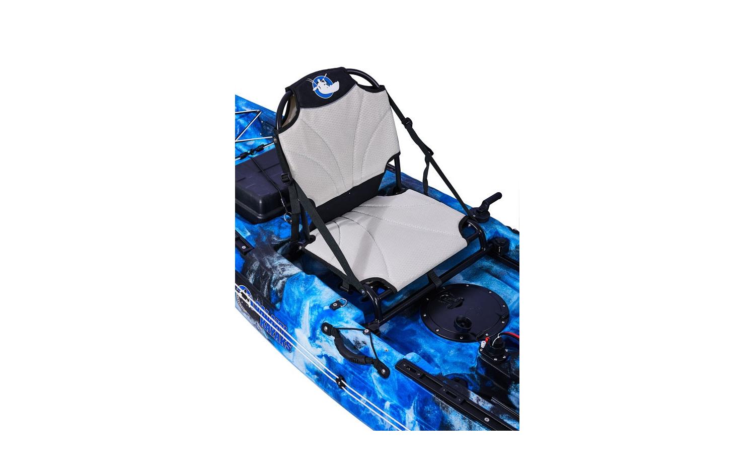 1 Vista Sitz: für erhöhten Komfort und eine höhere Sitzposition. Das Kajak beinhaltet den Vista High Sitz von Galaxy Kayaks, welcher nun auf Schienen befestigt wird und individuell anzupassen ist; an den Nutzer und den Gebrauch des Pedalantriebssystem.
