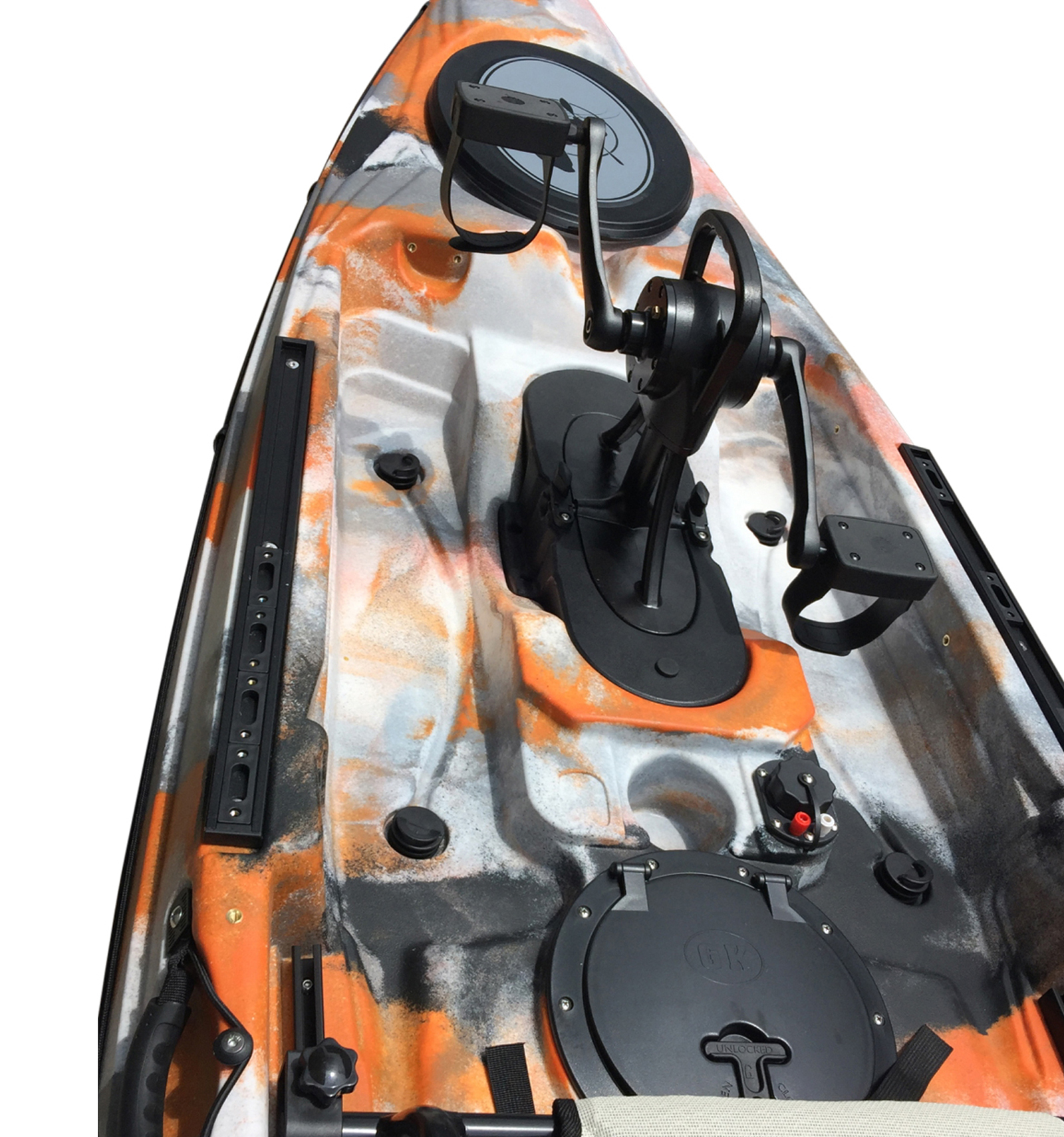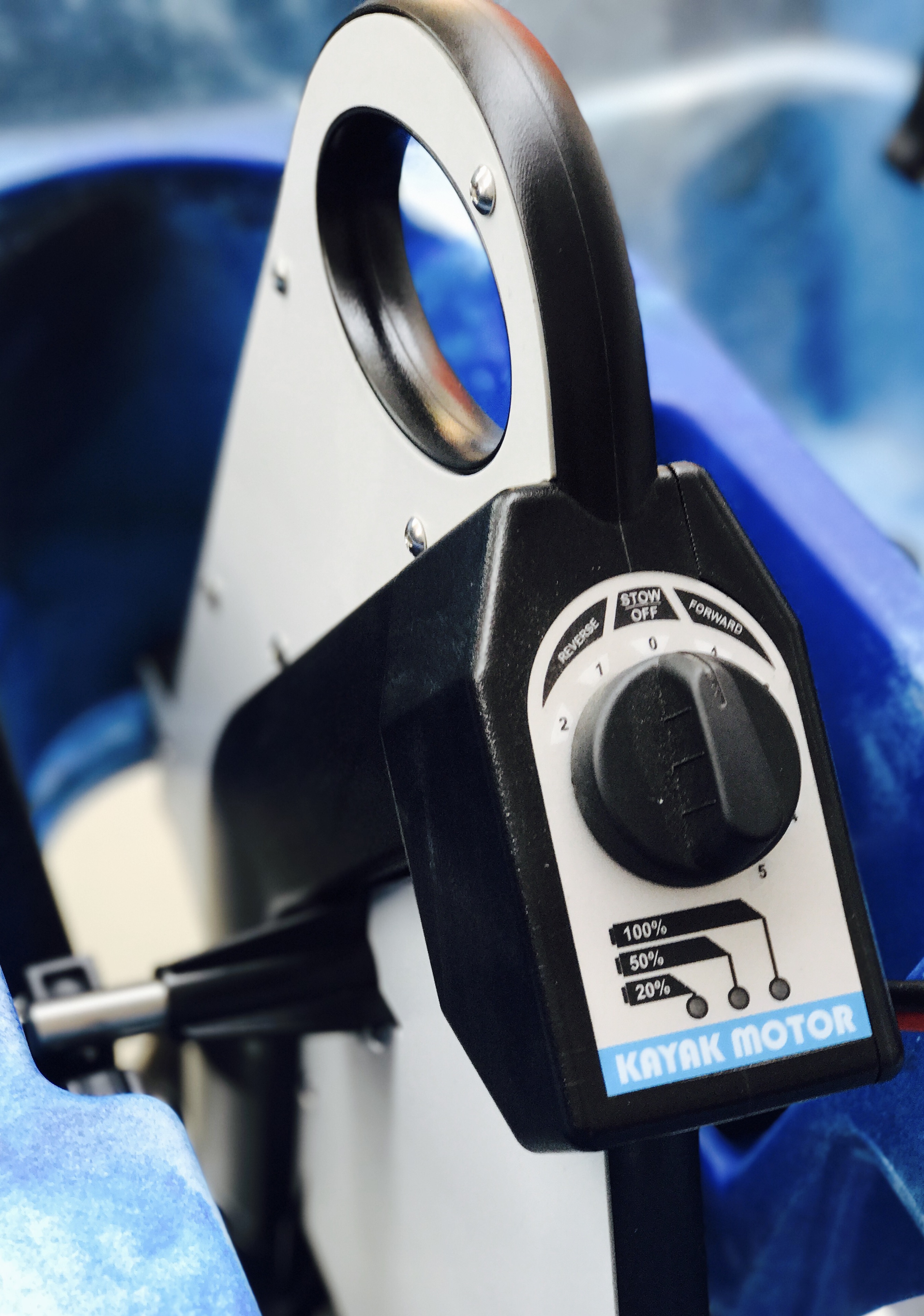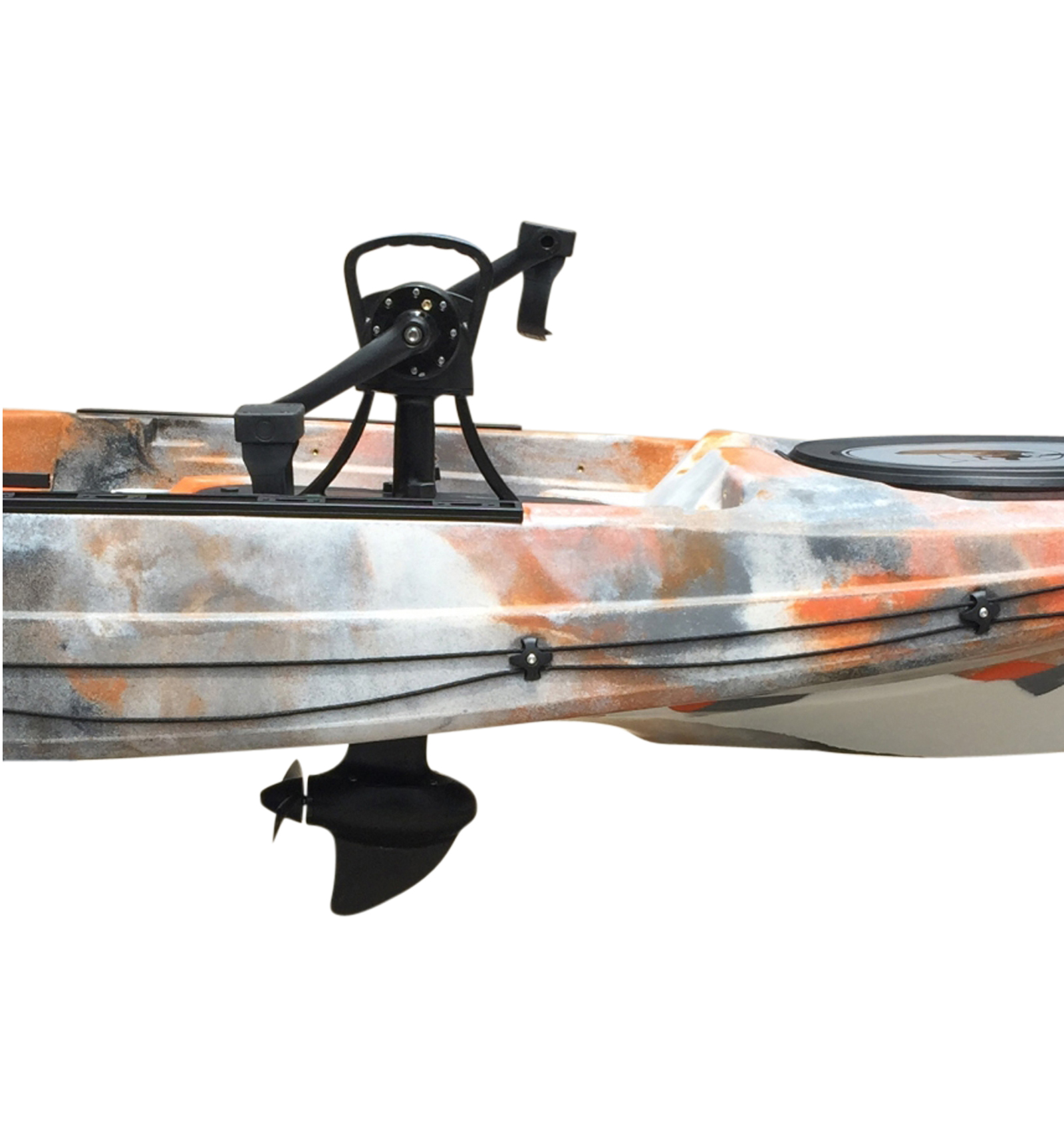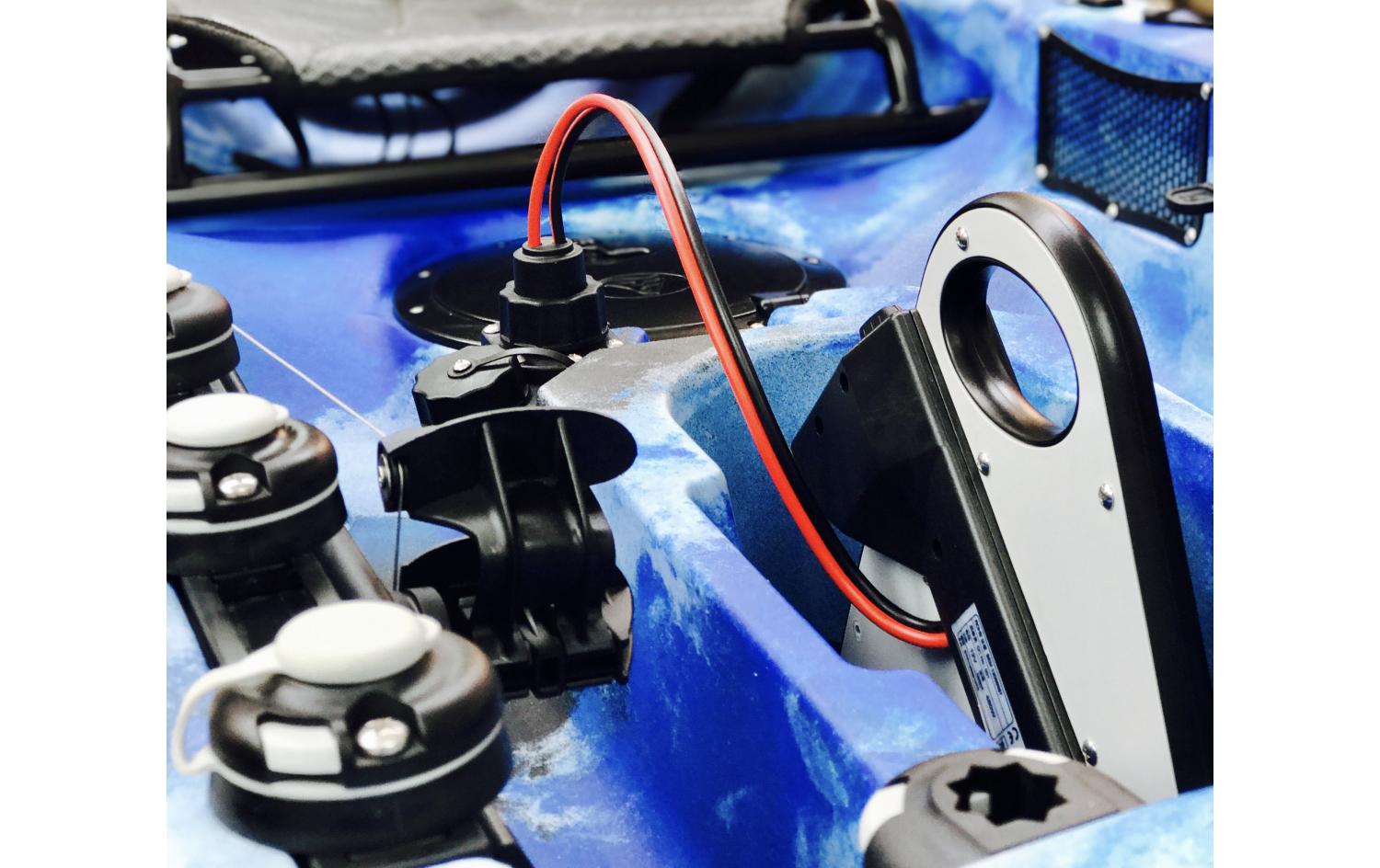 Der elektrische Kajakmotor mit einem 44LBS Antrieb wurde speziell für den Gebrauch in unserem Kajak der Wahoo S-Serie entwickelt. Dieser spezifisch gebaute Elektromotor hat 5 Vorwärts- und 2 Rückwärtsgänge.