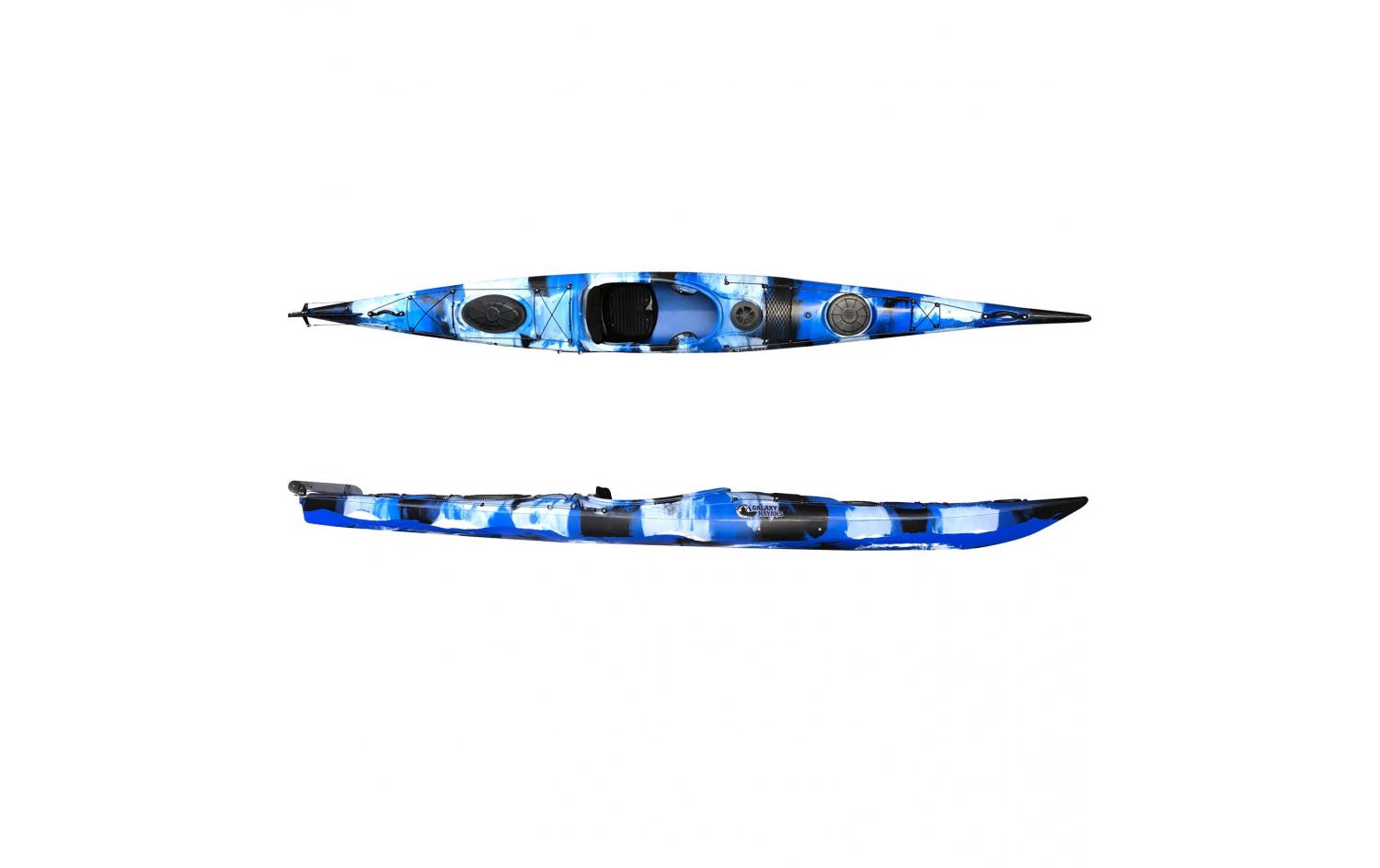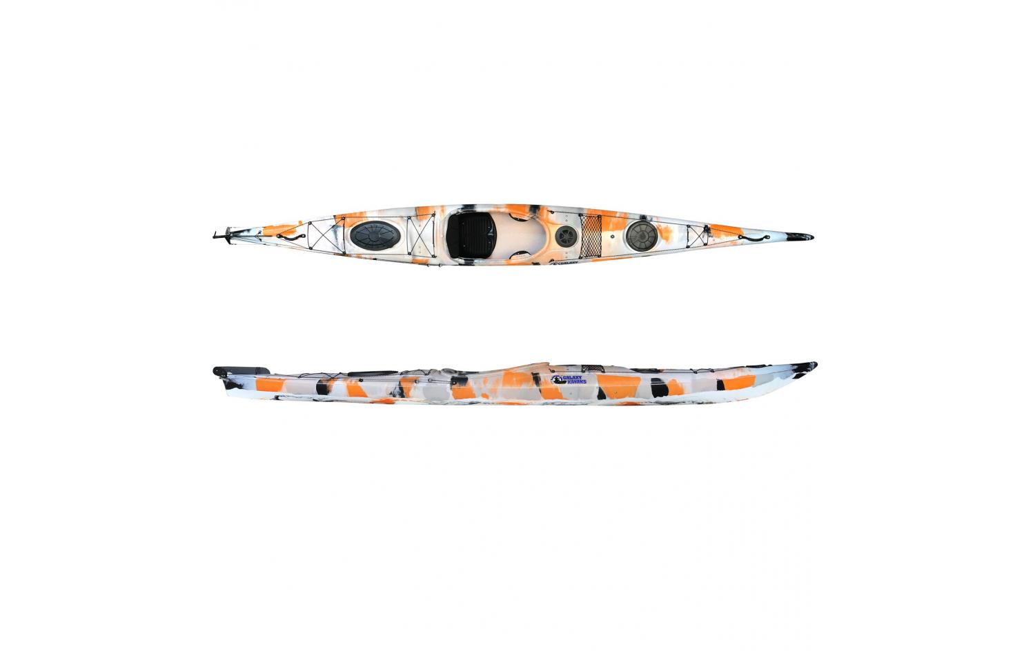 Das Galaxy Eskimo 16, bei dem man innen sitzt, ist ein langes Kajak mit fast 5 Meter Länge und einem superglatten, rasiermesserscharfem, v-förmigen Rumpf, wodurch man auf ein flinkes und dynamisches Meerspielzeug und Reisekajak zählen kann. Geschickt und kompetent bahnt es seinen Weg durch die Wellen mit der Hilfe seines stabilen Ruders. Es ist fest und ausgeglichen und macht eine gute Figur auf den Wellen des Ozeans.