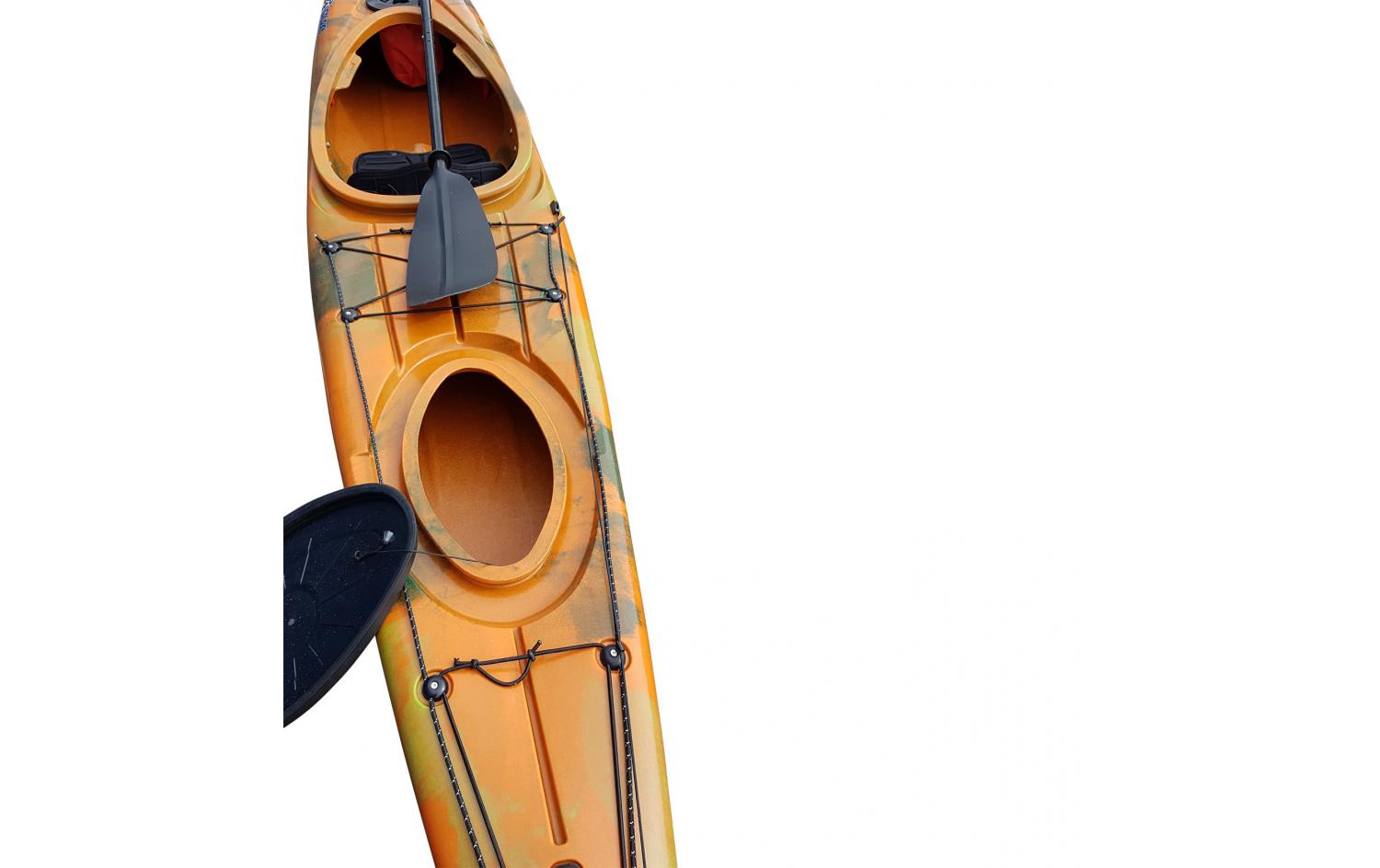 Ein Kajak, das für das Meer designt wurde und die Grenzen des Ozeanspieles herausfordert und dabei die Wellen öffnet für eine Welt voller Spaß und Möglichkeiten! Dieses Kajak wurde für diejenigen freigegeben, die sich selbst herausfordern wollen und ihre Abenteuer weiterführen möchten, während sie auch noch Sport betreiben. Es ist ideal für Personen, die lange Strecken fahren wollen, ebenso für Fischer, die gerne mit dem Netz fischen.