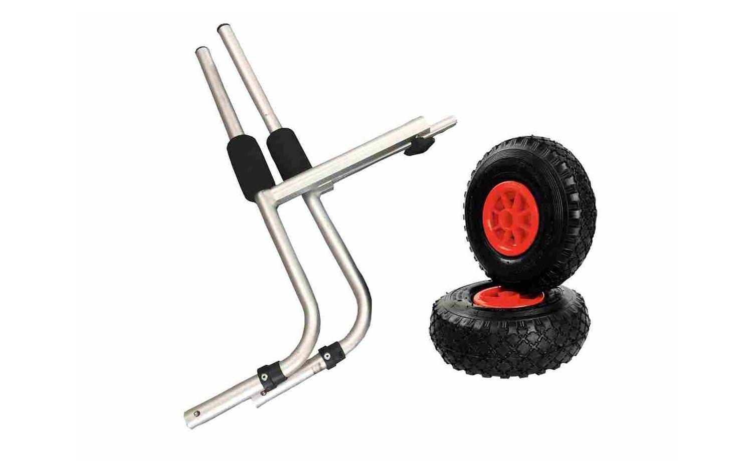 Dieser Wagen ist aus Aluminium und ist bis zu 40kg belastbar. Der H Kajakwagen ablösbar und wird mit einer einstellbaren Schraubbefestigung geliefert, die es dem Wagen erlauben, sich an die Speigatten der meisten Kajaks anzupassen.